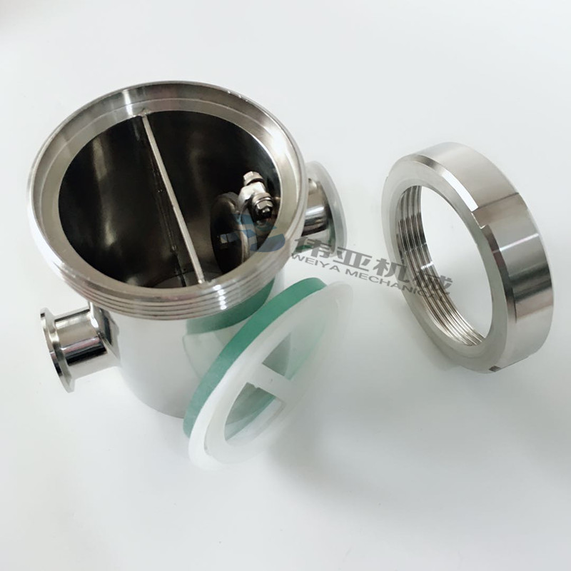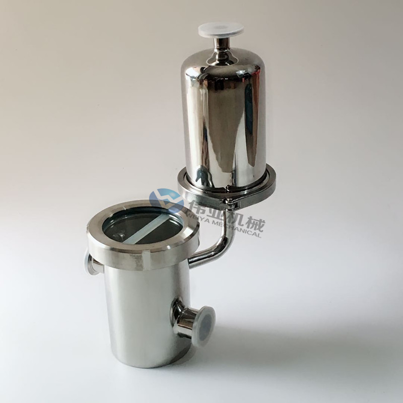 阻气装置的优点:1.一体化设计,可与储罐和设备连通,装置内部翘板式止回装置;2.液体排放在分隔装置内部,无飞溅险恶,无二次污染;3.配有试镜的观察窗可用以观察内部工作条件,并且容易维护;4.用304不锈钢制成,垫片用聚四氟乙烯或硅橡胶制成,以满足药物生产的要求;5.系统吸尘时,有一个检查装置硅胶垫,可以隔绝设备排水管和排水沟。6。地漏本身具备水封,可满足新版本GMP的所有要求以及洁净的地漏。