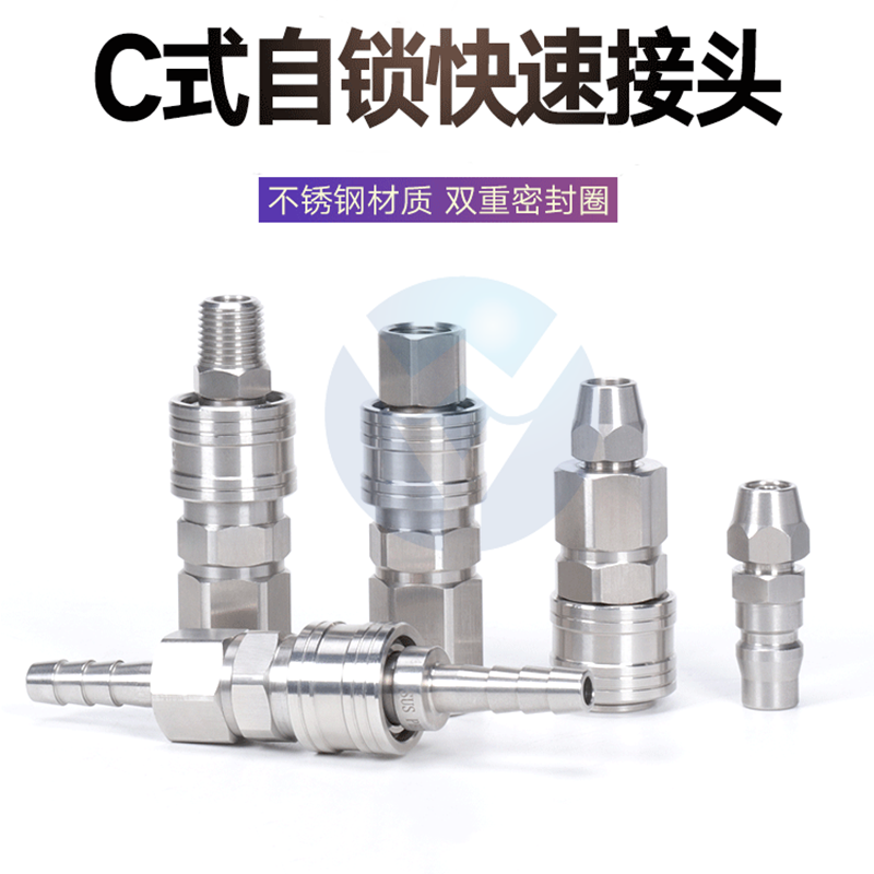 9.自锁快速接头,手感好,只需一只手即可操作。原装双密封圈设计,(市场上很多都是单密封圈构造),不易外泄。双密封圈,全不锈钢制成,模具铸造,全然气密,外观精致,耐腐蚀!出口海外并赢得好评如潮!值得信赖的快速接头!您值得具备!全不锈钢自锁快速接头,内部集成不锈钢锁芯。