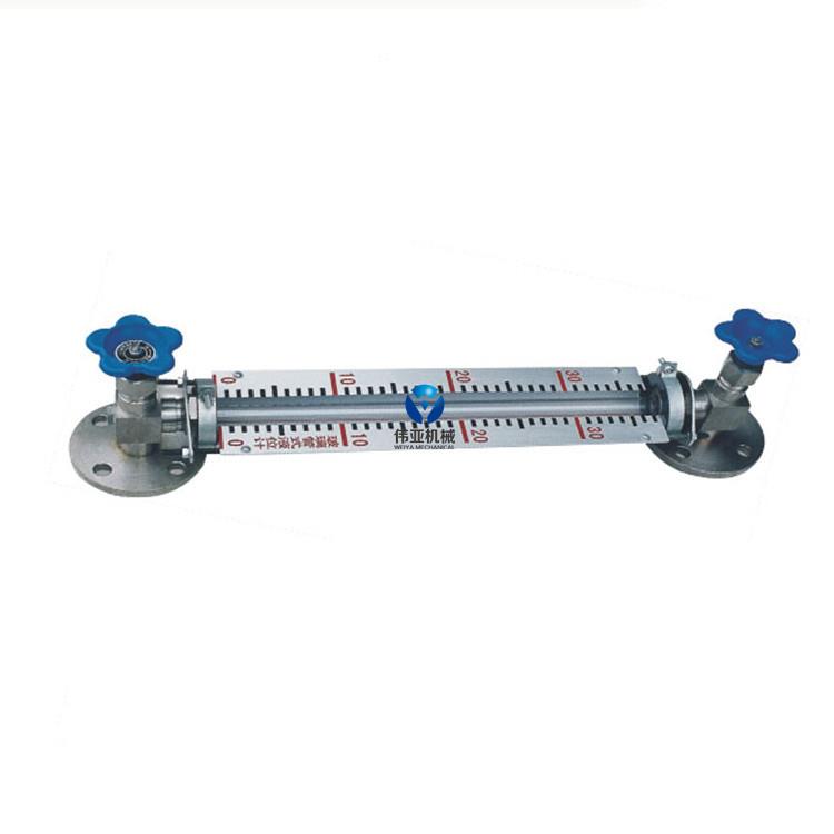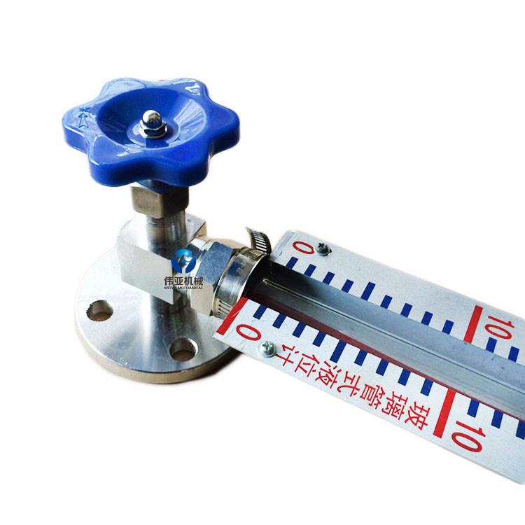 玻璃管液位计上下阀均配有控制开关和调节阀。连接方式一般而言包括迅速安装,焊接,穿线以及法兰连接到容器。容器的液位可通过玻璃管直接显示。两边的控制阀均装有钢球。当玻璃管因事故而破裂时,钢球会在容器的压力下自动关闭针形阀通道,以以防介质从容器中流出。