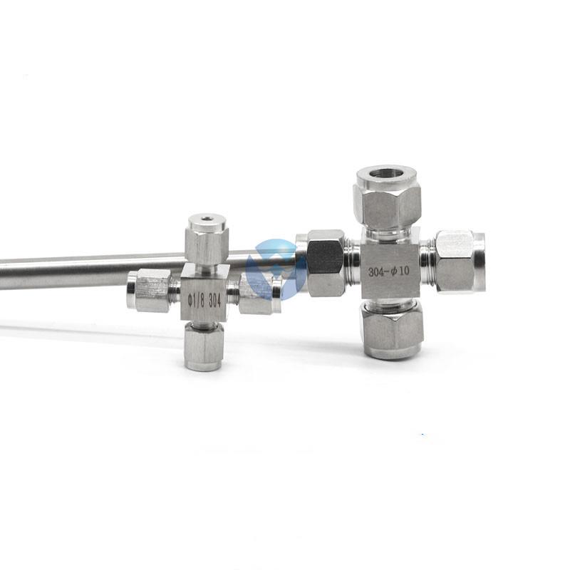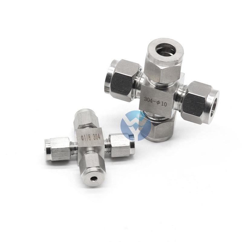 产品详情:不锈钢套圈四通管接头的工作原理和安装要求是将钢管插入套圈中,用套圈螺母将其锁紧,抵住套圈,切入管子并密封,不需要与钢管连接时可开展焊接,有利防火,防爆和高空作业,可扫除因焊接不慎引致的流弊。因此,它是自动控制管道中较为先进的连接器。炼油,化工,原油,天然气,食品,制药,仪器仪器和其他系统中的装置。适用于原油,天然气,水和其他管道连接。