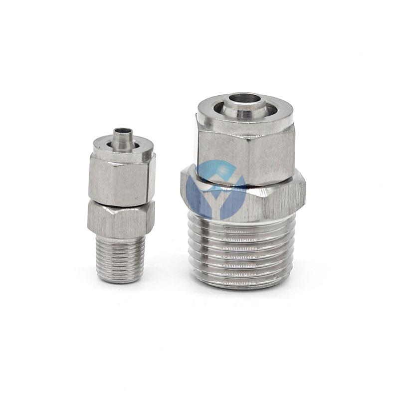 不锈钢快速拧紧接头的工作原理:快速拧紧接头的工作原理是将PU气管插入快速拧紧端,然后用螺母锁住pu管并切入管密封。